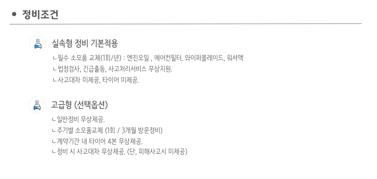 (2) 정비 및 사고처리 등 차량 관리가 편리하고 항상 최상의 상태의 차량을 운용하실 수 있습니다.